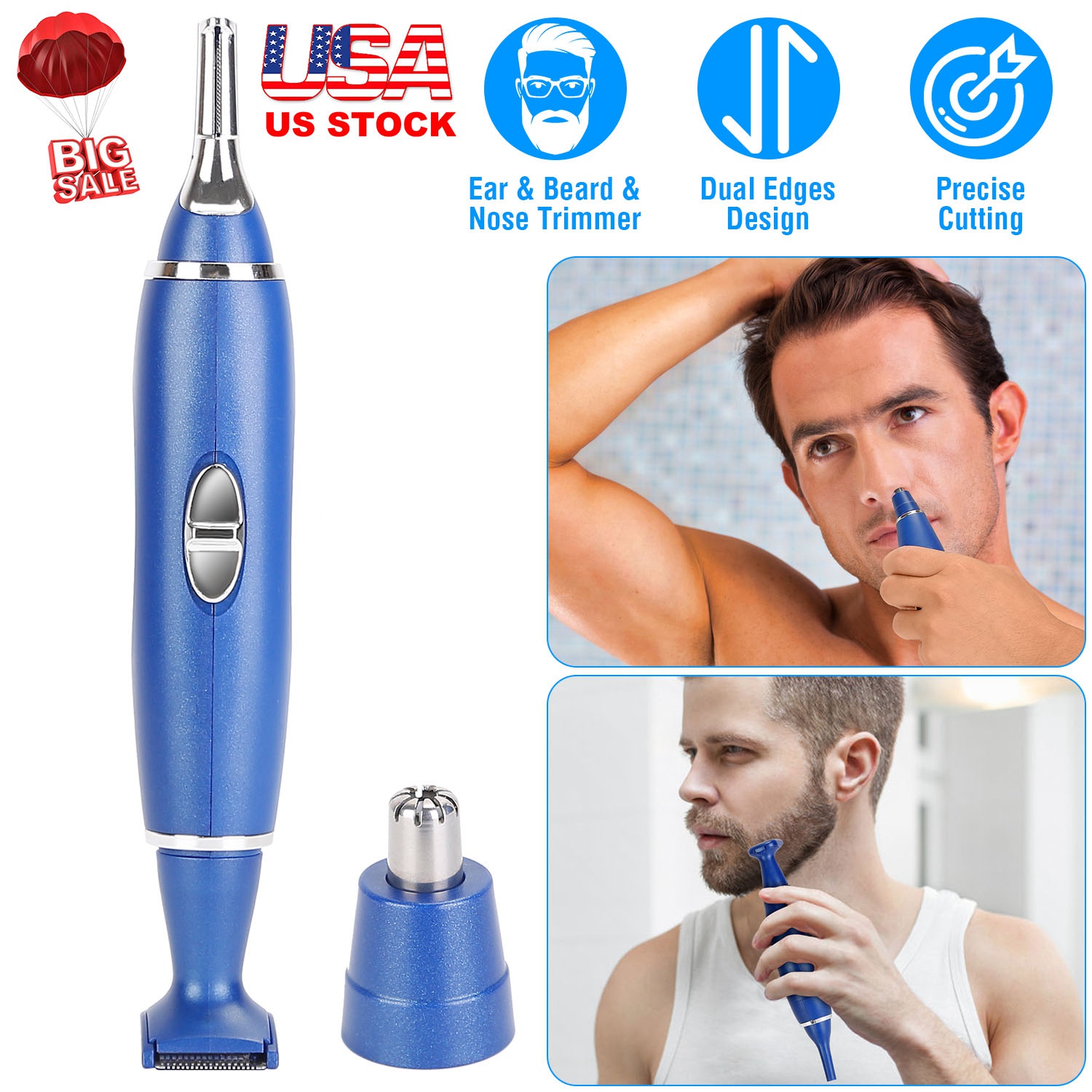 Home > 3 In 1 Nose Hair Eyebrow Beard Trimmer Electric Ear Hair Shaver Clipper Groomer Epilator for Men Battery Powered Facial Hair Trimmer w/ Dual Edge Dry